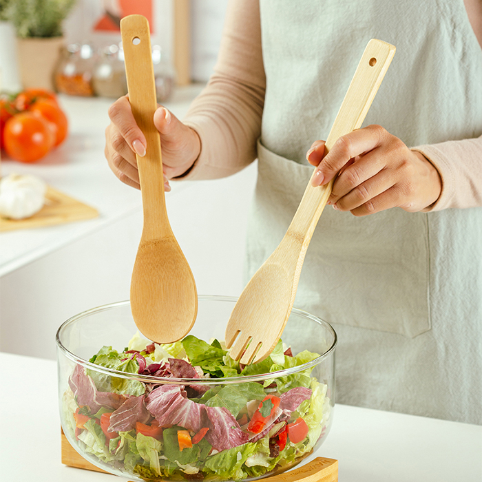 Gli utensili da cucina Terrestrial sono realizzati in legno di bambù, 100% ecocompatibili e sono realizzati secondo le normative per i prodotti che vengono a contatto con gli alimenti. Sono una scelta completamente naturale e salutare per la cucina.