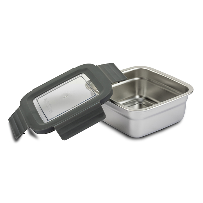 Contenitore per alimenti quadrato in acciaio inox con coperchio in plastica "Misty" 600ml