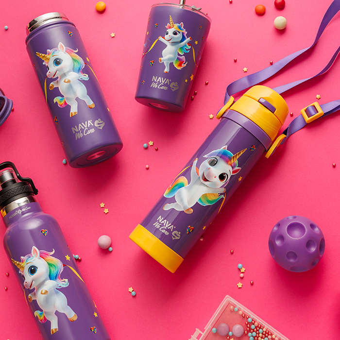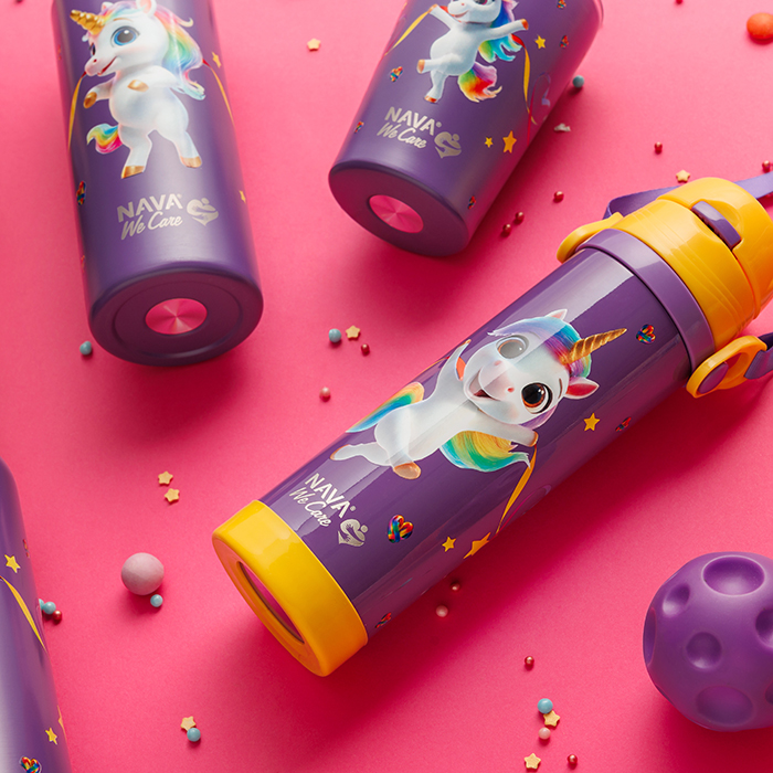 Bottiglia termica in acciaio inossidabile "We Care", Purple Unicorn 500ml