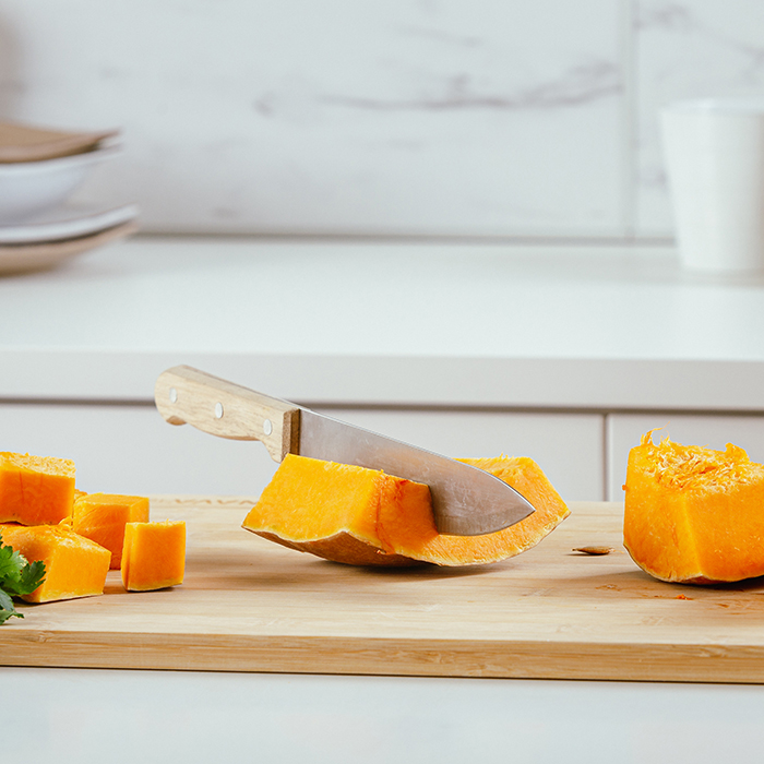 Usa il tagliere in bambù Terrestrial di NAVA per tagliare erbe, filettare, intenerire la carne, tagliare frutta o verdura o usarlo come piatto da portata.